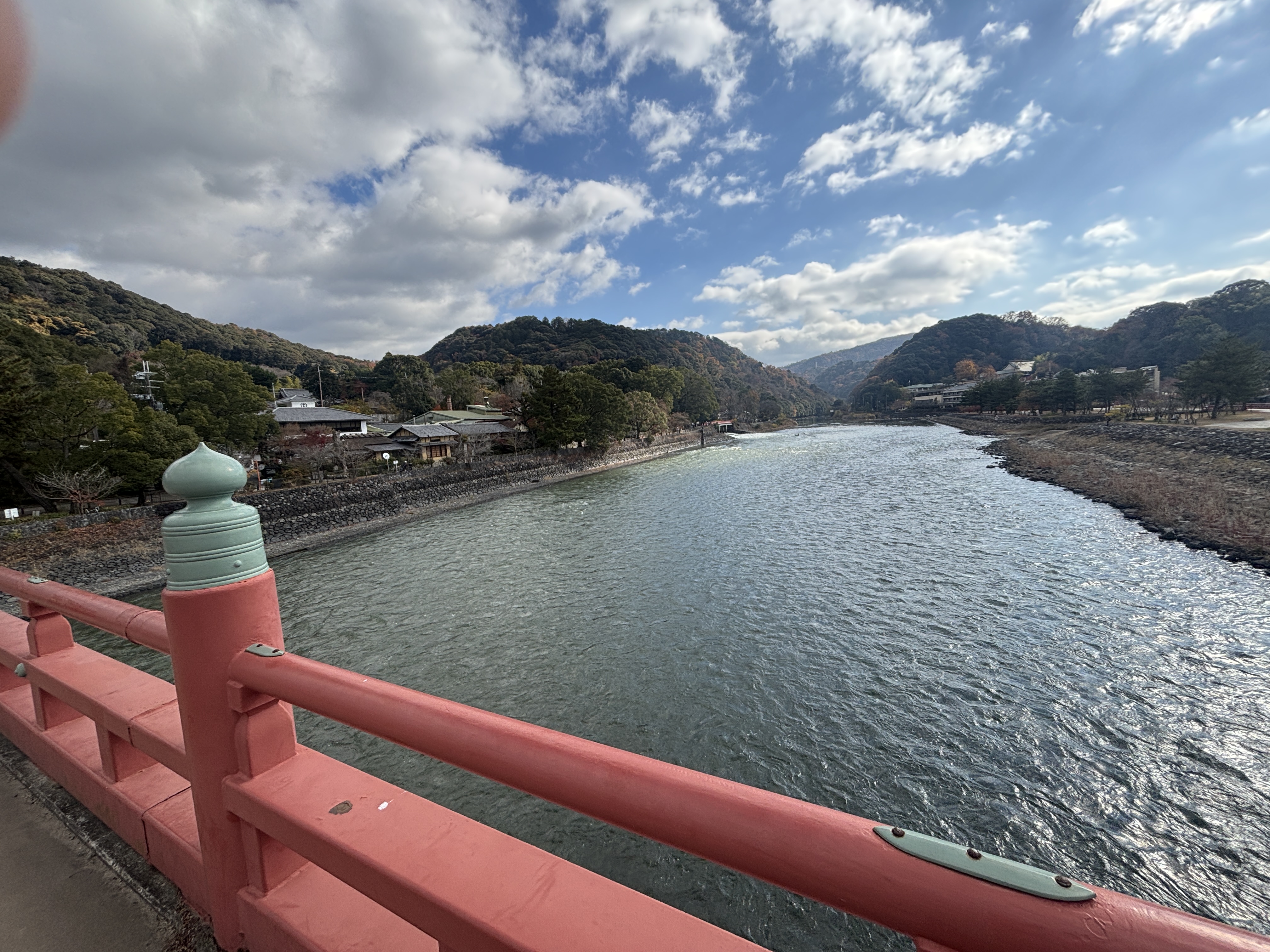 その後、朝霞橋を渡り、橘島を通って宇治川南側(平等院側)に