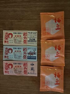 私は福豆、3つ買いました。自動車当たることを楽しみにしています